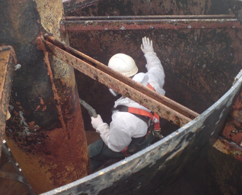 All staff trained in confined spaces and breathing apparatus with rescue training, tank works, pit cleaning, gaseous atmosphere and DSEAR trained.